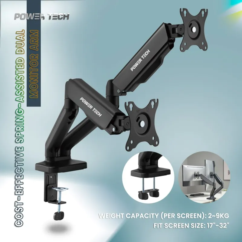 POWER TECH MA024E Dual Monitor Arm ជើងម៉ូនីទ័រ ចាប់ជាប់តុ